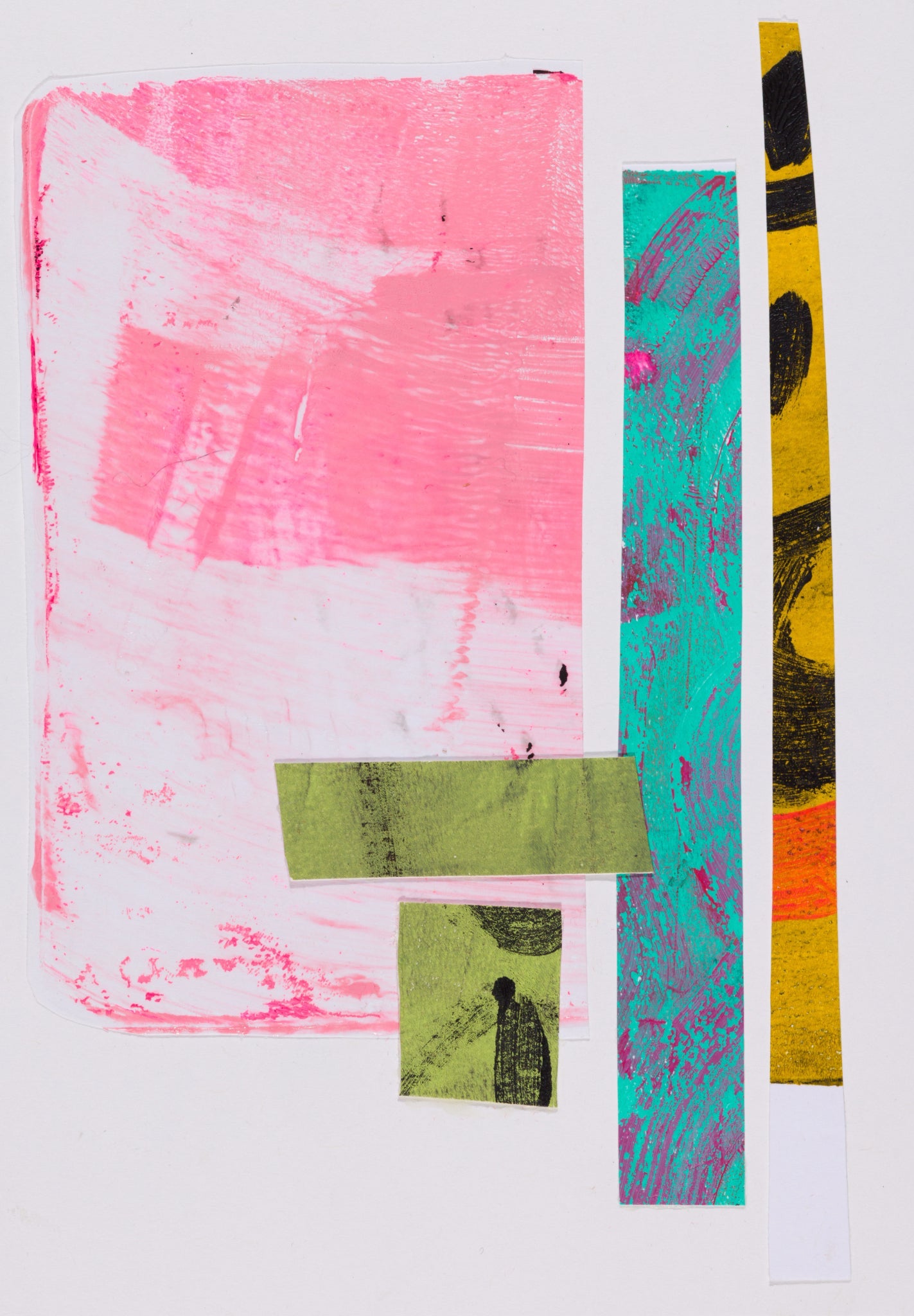 Part of a series of collages made from acrylic paint mono prints and inspired by improvisational quilting.